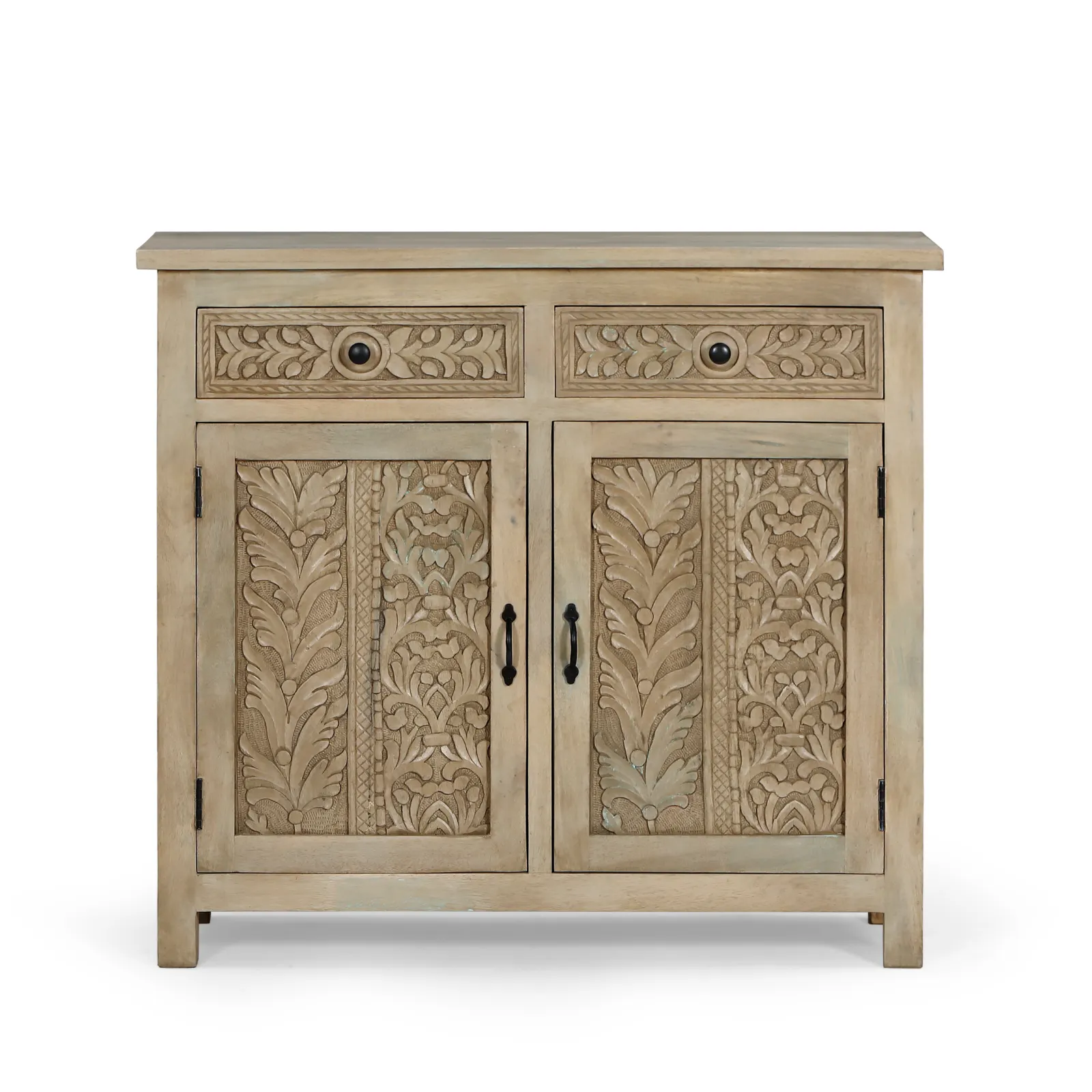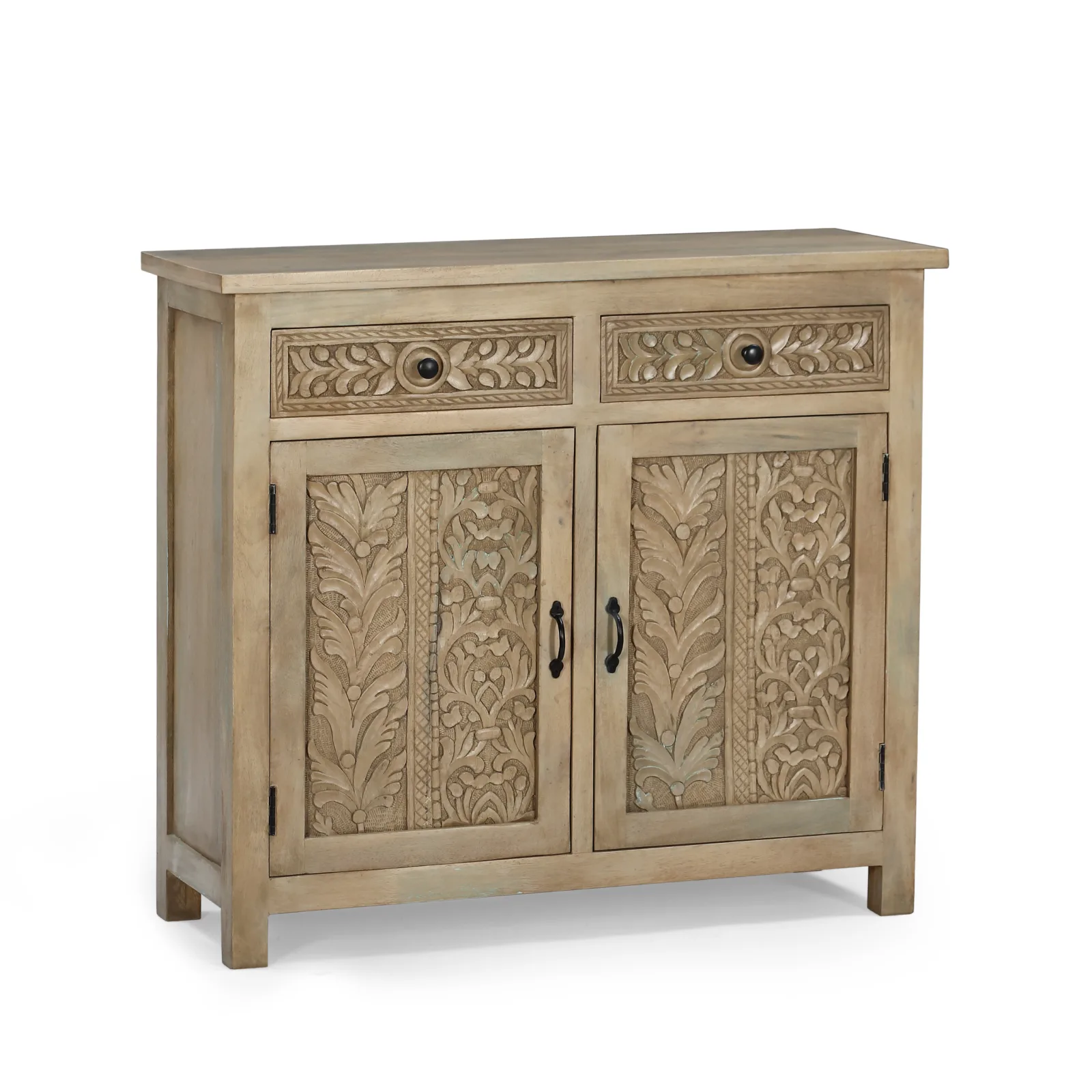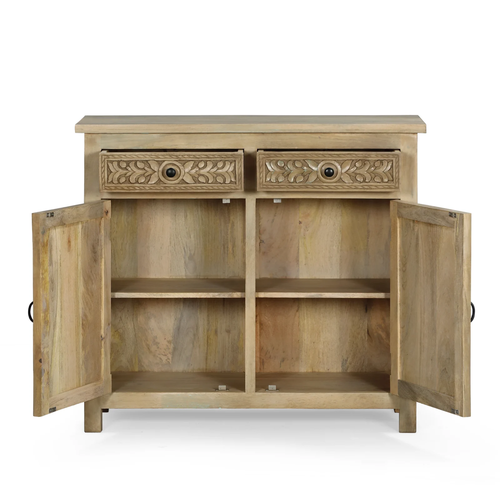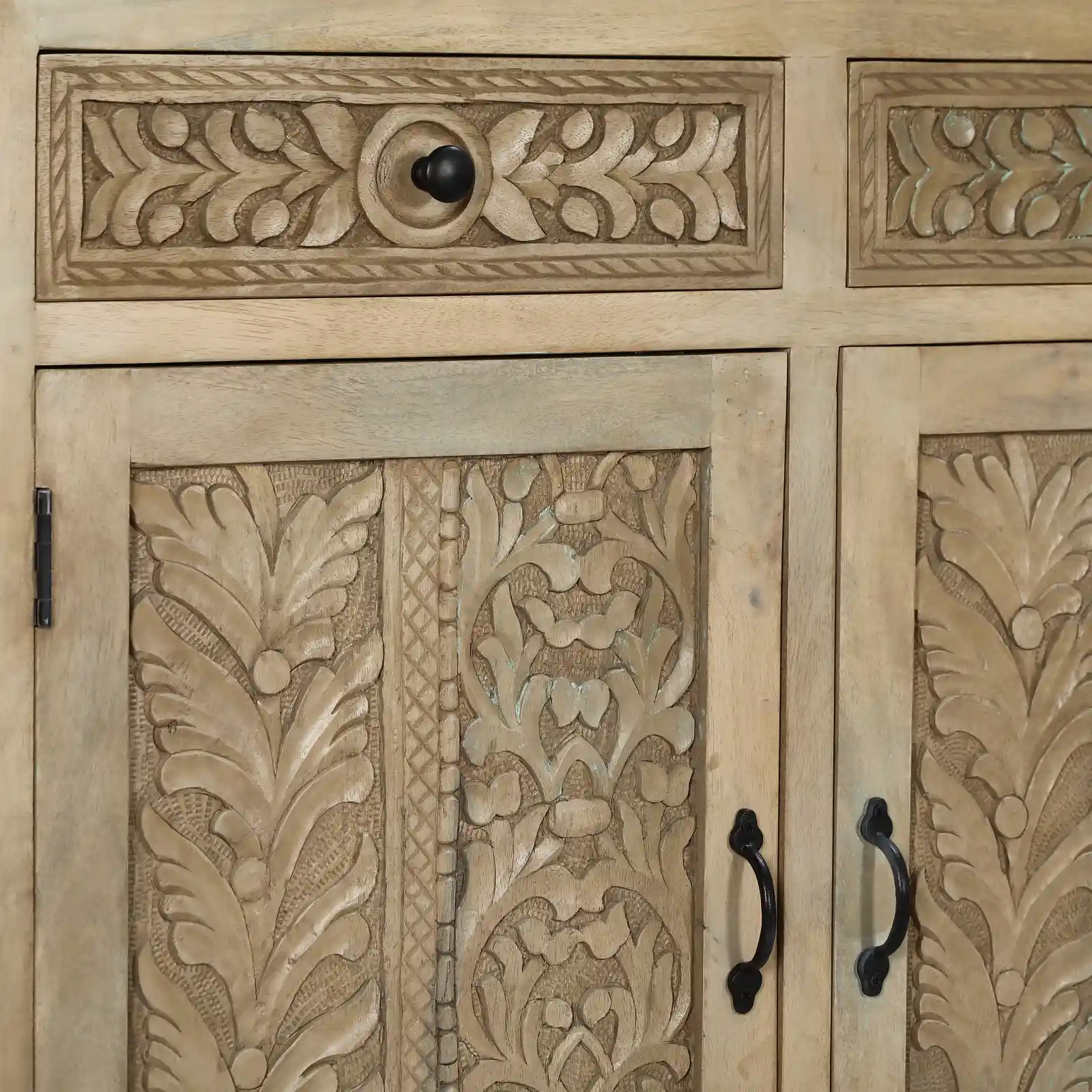 Aparador (105cm) en madera de mango, con cajón y puertas talladas a mano