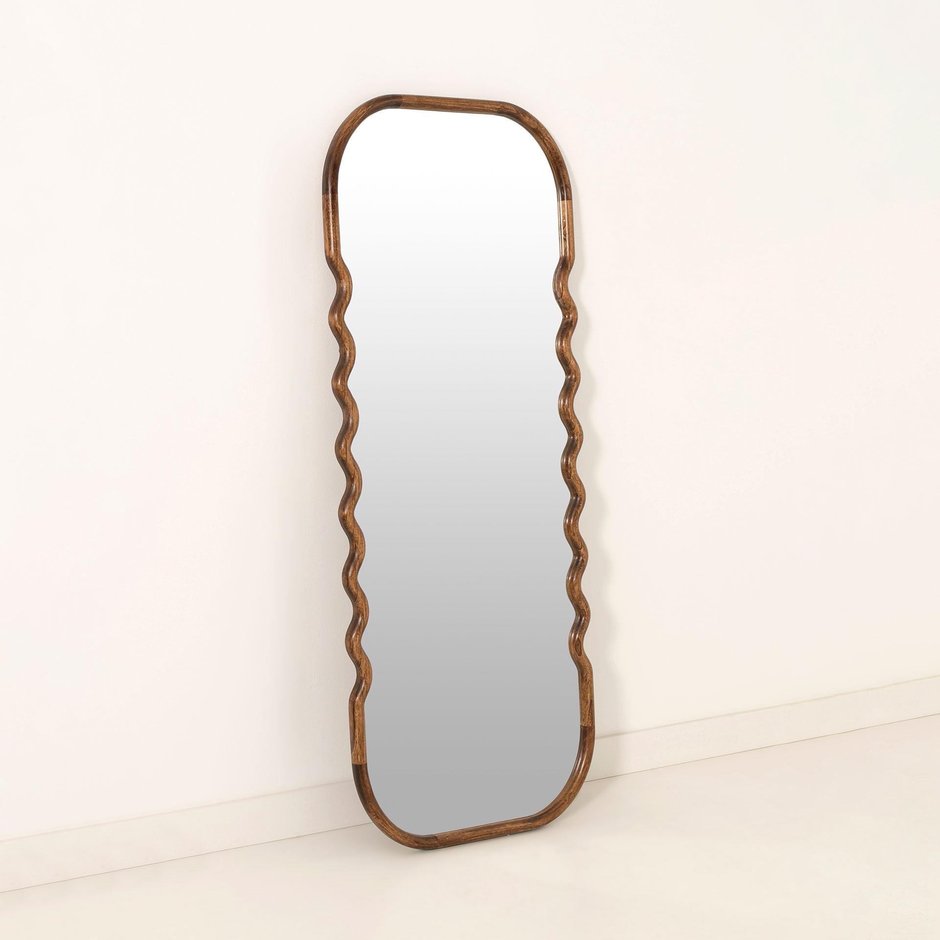 Este espejo en madera de nogal (160x60cm) es de esas piezas que confirman que los detalles marcan la diferencia. Si buscas algo que se salga de lo común pero que siga siendo atemporal, el diseño en zigzag de su marco es justo lo que necesitas para darle vida a tus paredes. Es un espejo con un tamaño muy equilibrado, que funciona muy bien para un vestidor o un recibidor, ya que además de ser súper práctico, ayuda a que el espacio se sienta mucho más amplio y fluido. Además, se puede colgar en vertical y en horizontal.