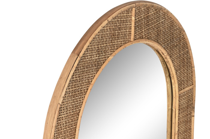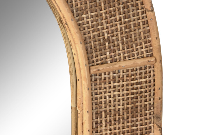 Este espejo de ratán con arco tipo ventana es pura calidez y encanto. Su textura natural y su diseño armonioso lo convierten en un complemento perfecto para espacios acogedores y llenos de vida. Combina con muchos estilos, pero brilla especialmente en ambientes naturales, donde su tono y materiales crean una atmósfera relajante y serena. ¡Un detalle con personalidad que nunca pasará desapercibido en tu casa!