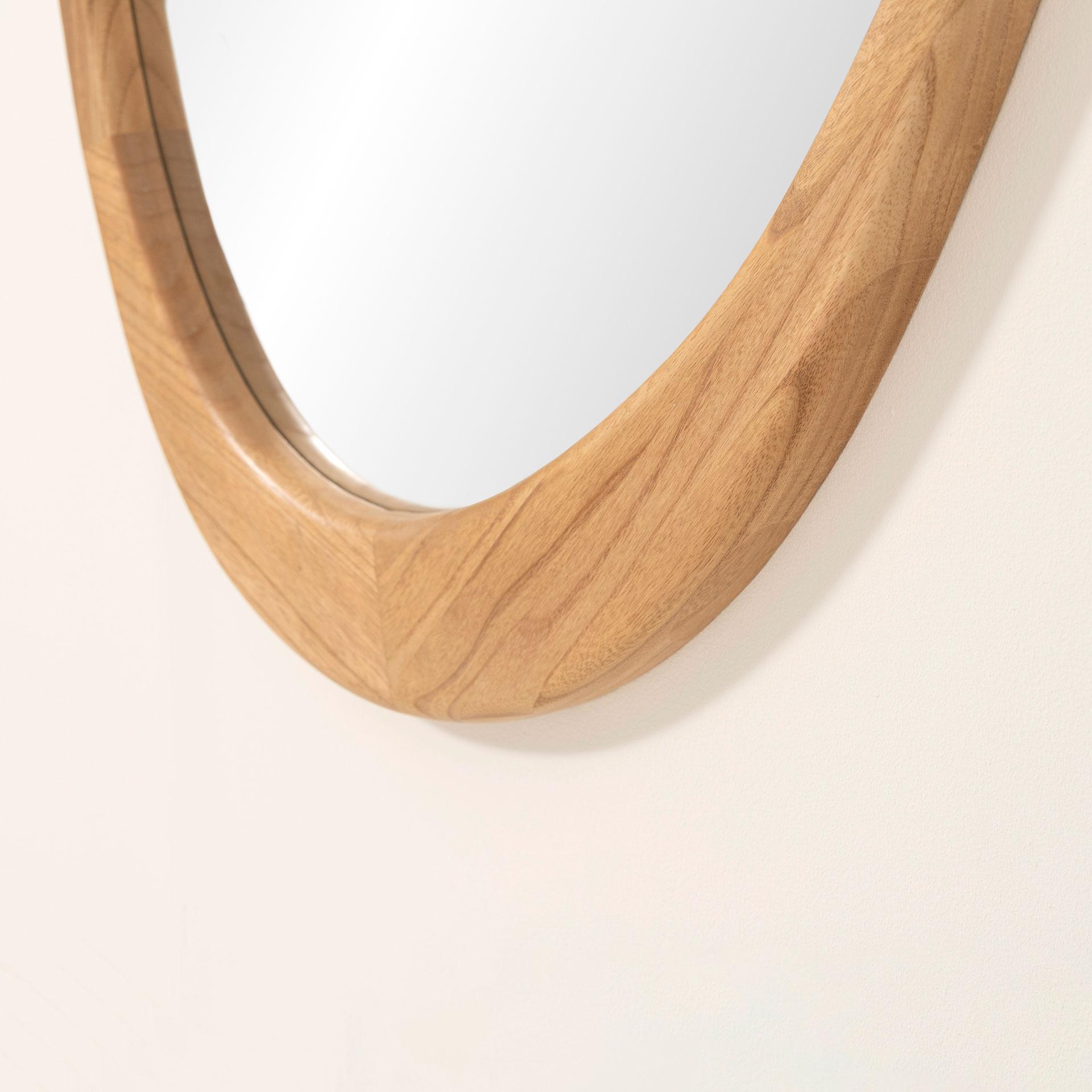 El marco está fabricado en madera de roble, que destaca por esas vetas naturales tan cálidas y de calidad. Pero lo que realmente lo hace especial es su forma irregular. Al alejarse de las líneas rectas de siempre, se convierte en una pieza muy original y orgánica, que termina aportando un toque natural a cualquier rincón de tu casa.