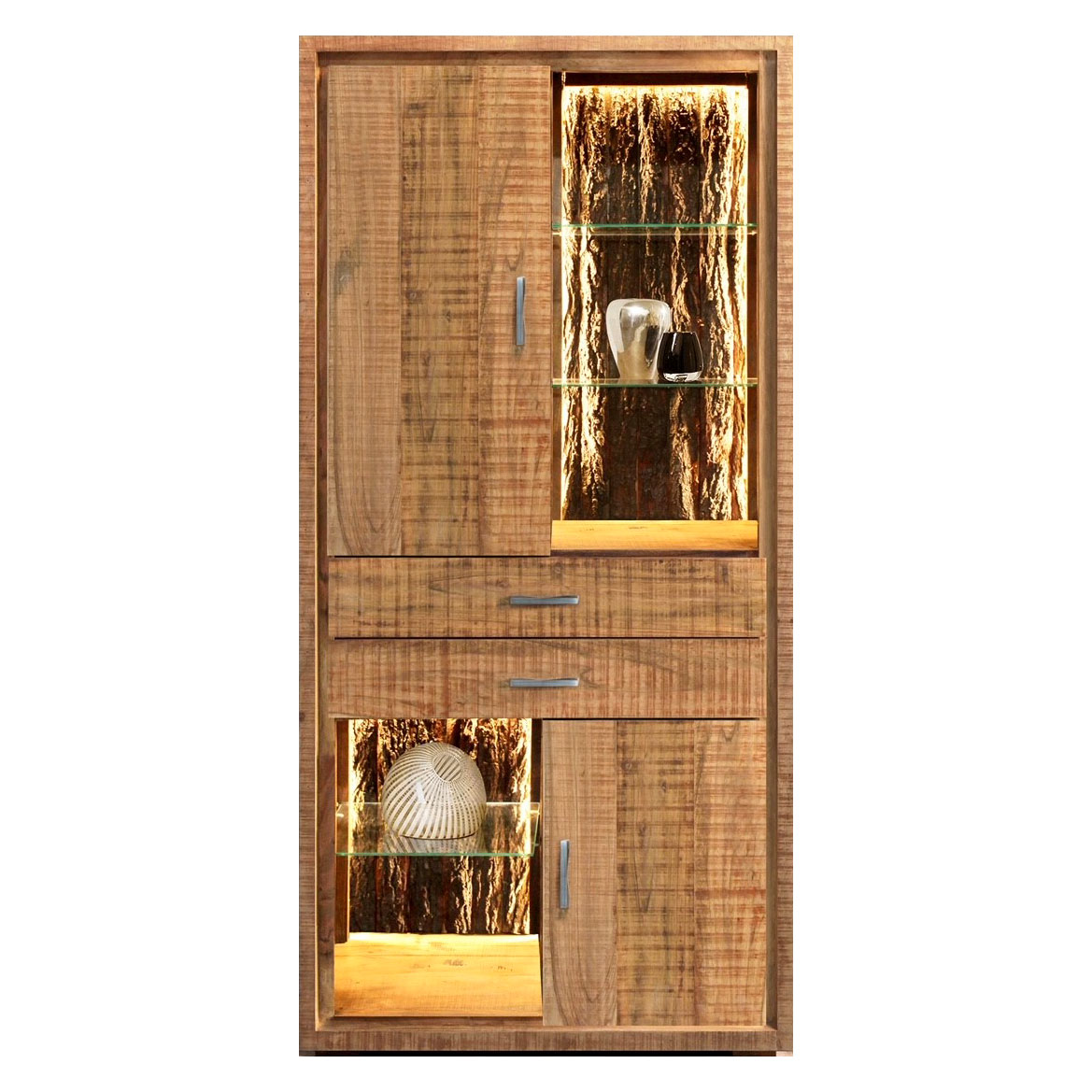 Estantería con puertas y cajones en madera de mango certificada y sostenible, con textura y luces led