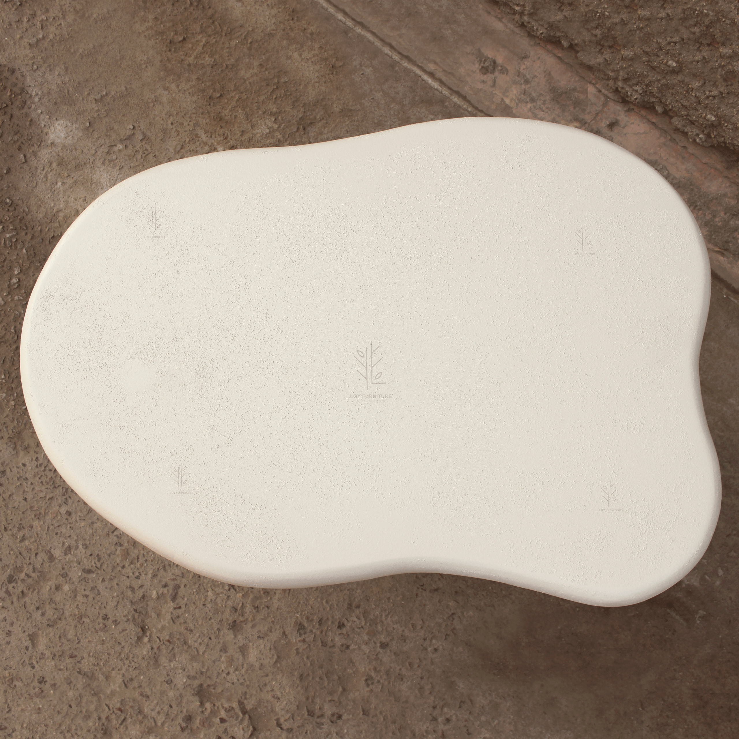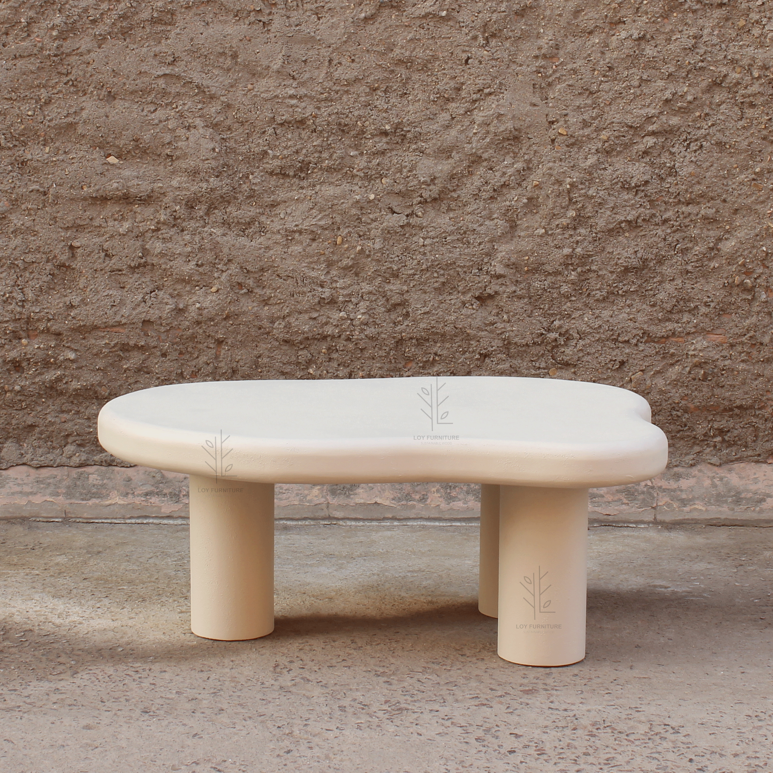 ¡Te enamorará con tal sólo tocarla! Esta mesa de centro en MDF y acabado efecto cemento color blanco hueso, es todo menos seria. Sus formas orgánicas y sus tres patas le dan un aire divertido y desenfadado que rompe con la rigidez y refresca cualquier salón. Perfecta para quienes buscan un toque diferente, original y con personalidad. Sus curvas suaves y su color claro la hacen ligera, acogedora y muy fácil de combinar como tú quieras.