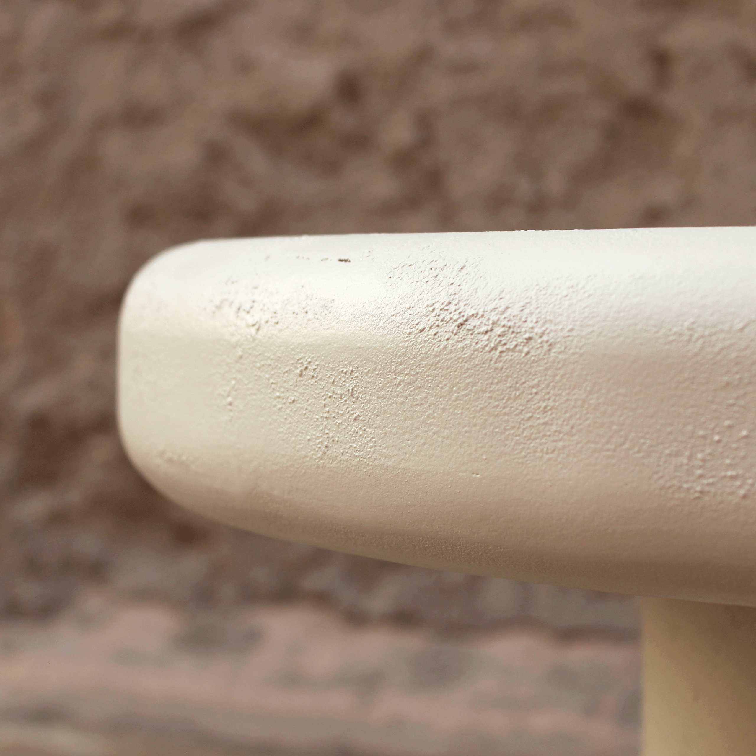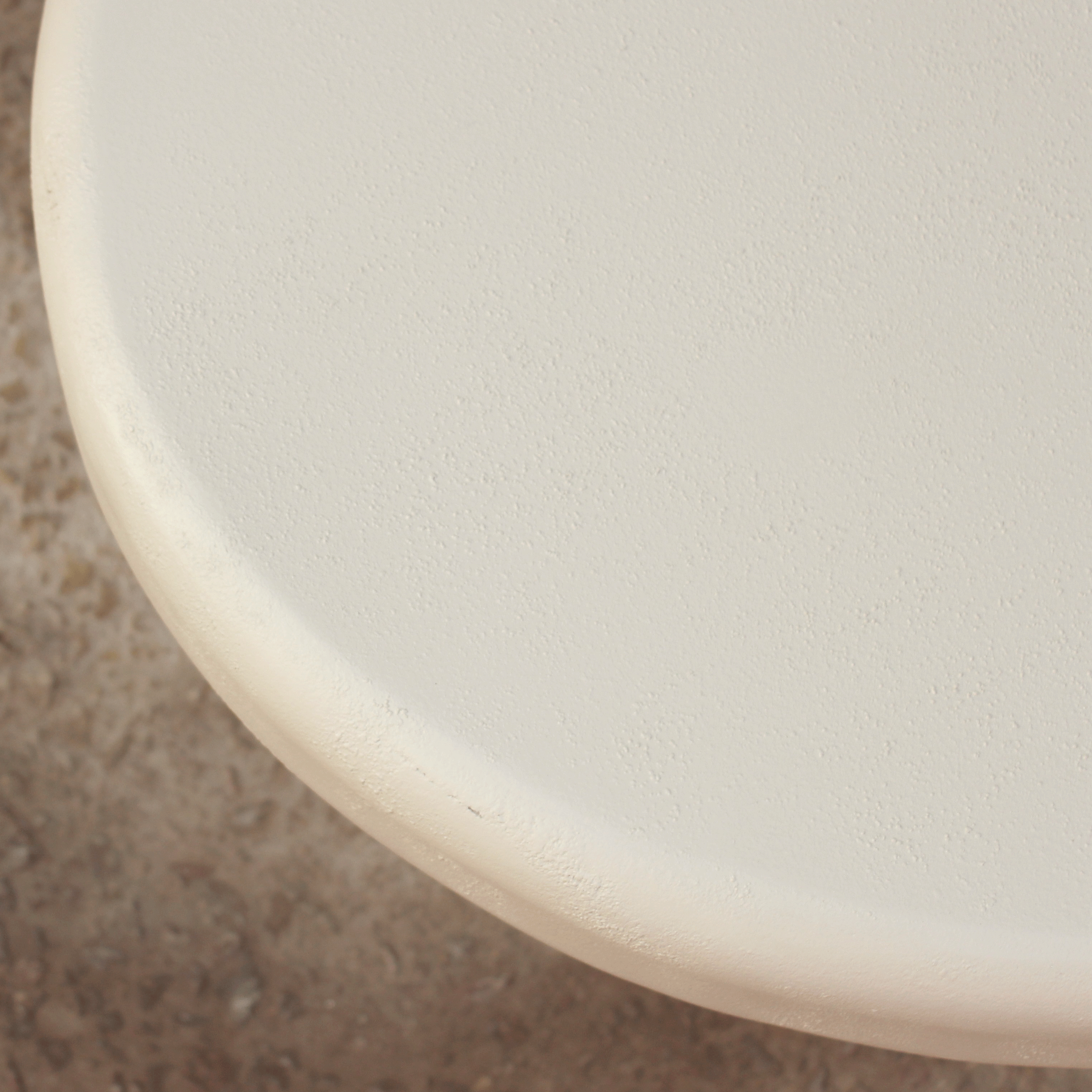 Mesa de centro en MDF, con tres patas y acabado efecto cemento color hueso