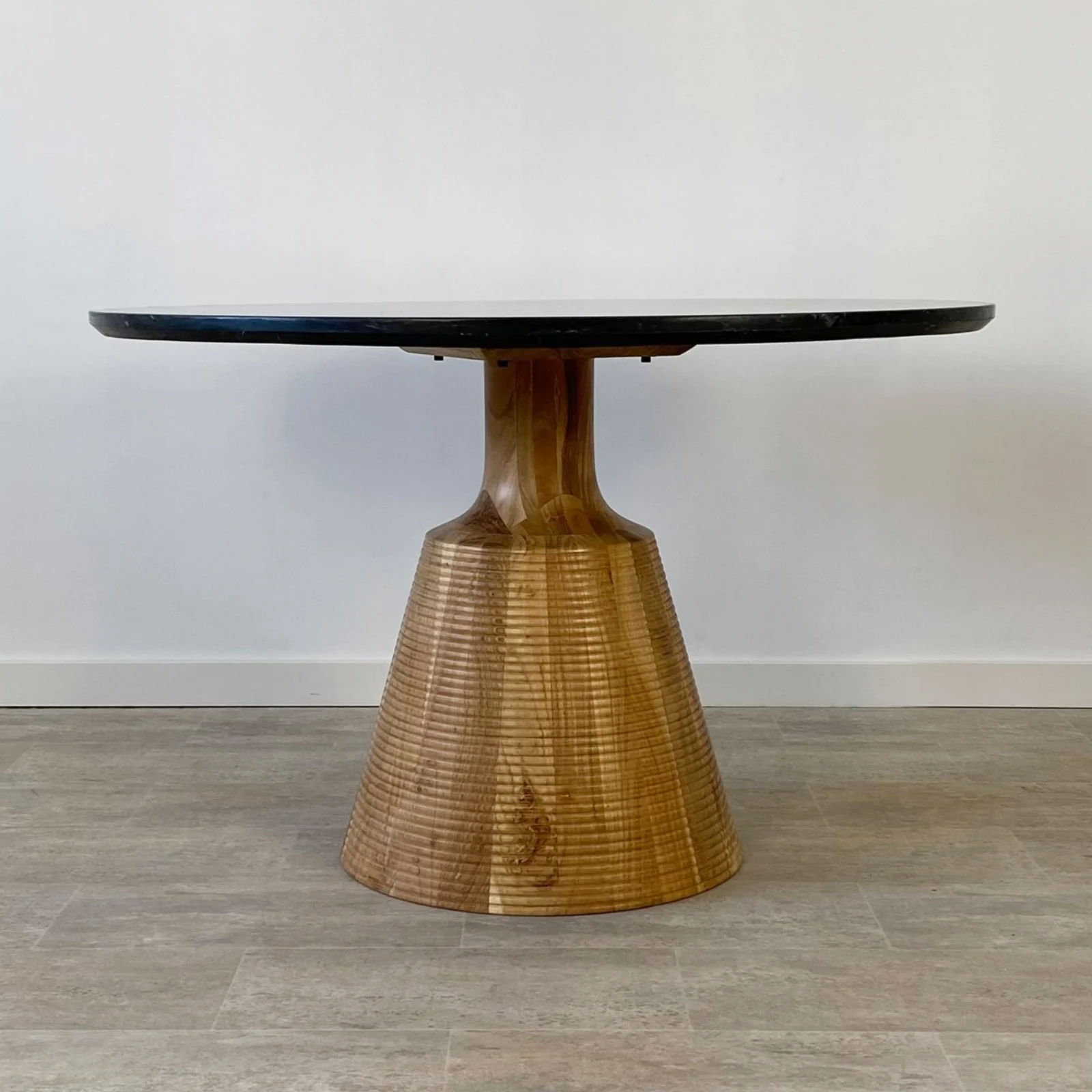 Mesa de comedor redonda en madera de acacia certificada y sostenible con tapa de mármol negro