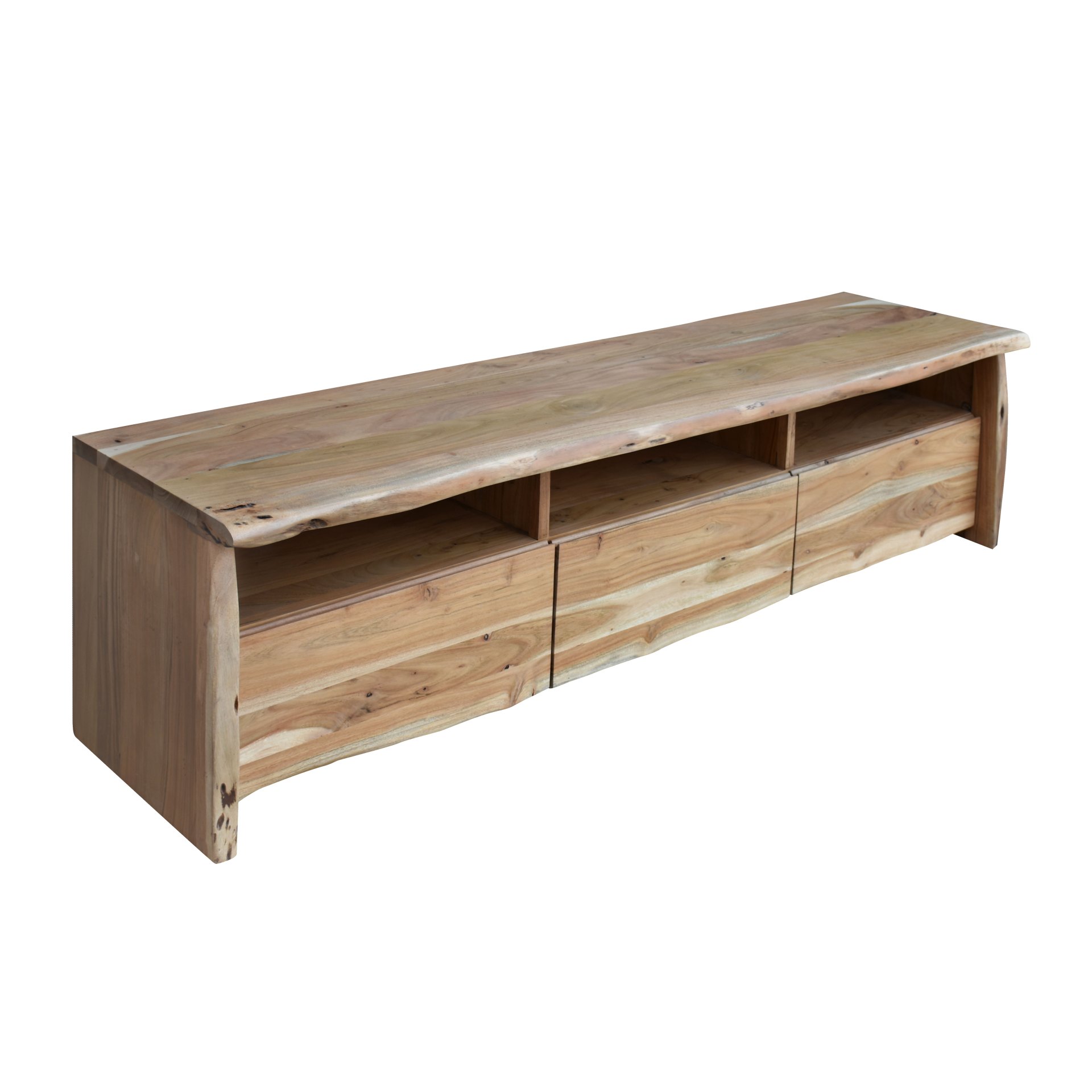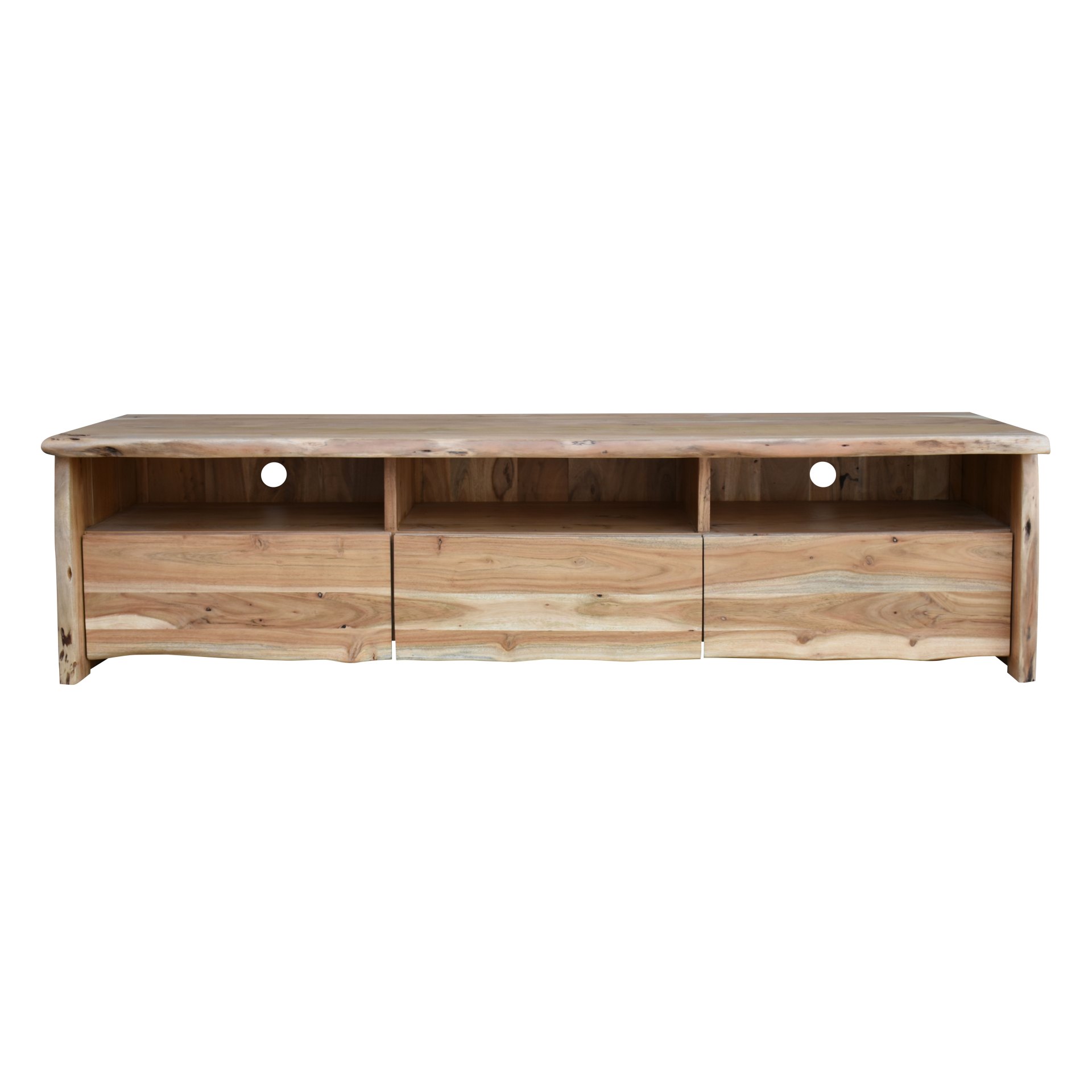 ¡El mueble TV Natura Edge es todo lo que necesitas para darle un toque natural y cálido a tu salón! Hecho de robusta madera de acacia certificada y sostenible, su acabado orgánico resalta esos cantos irregulares que le dan un carácter único. Además, cuenta con 3 cajoneras, 3 huecos y 2 agujeros para pasar los cables. Prepárate para disfrutar de un pedacito de naturaleza en casa con este mueble TV lleno de personalidad y encanto. ¡No te lo puedes perder!