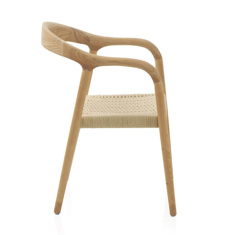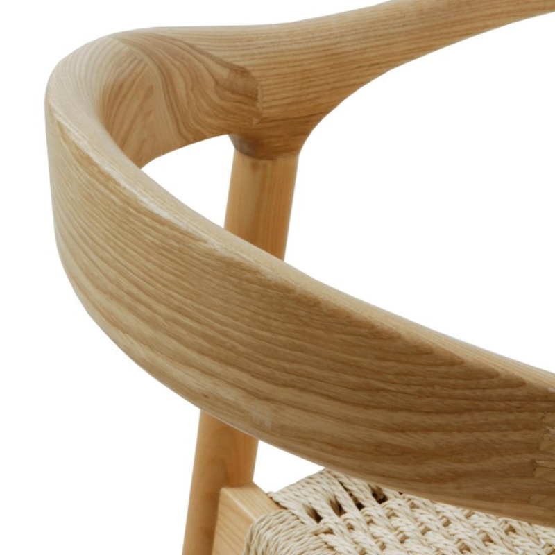 Lo que te va a enamorar por completo es su asiento trenzado con aiento de cuerda natural. Tiene ese toque artesanal “de toda la vida” que le da textura y un punto de calidez que hace que tu comedor se sienta acogedor. Está fabricada en madera de fresno con vetas suaves, lo que supone una resistencia extra para el trote que le quieras dar en el día a día… ¡aguanta lo que le echen!