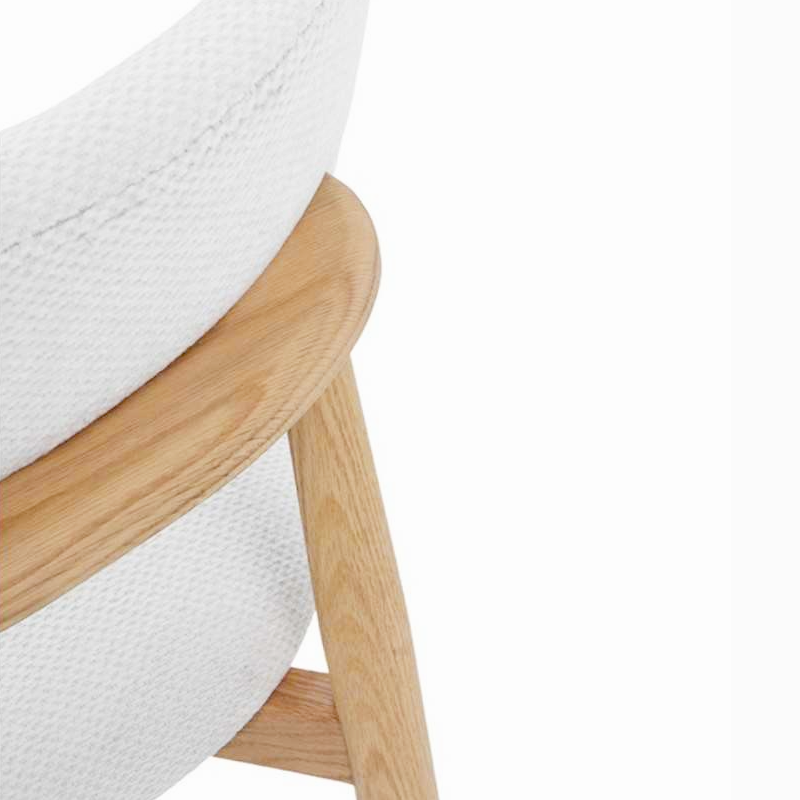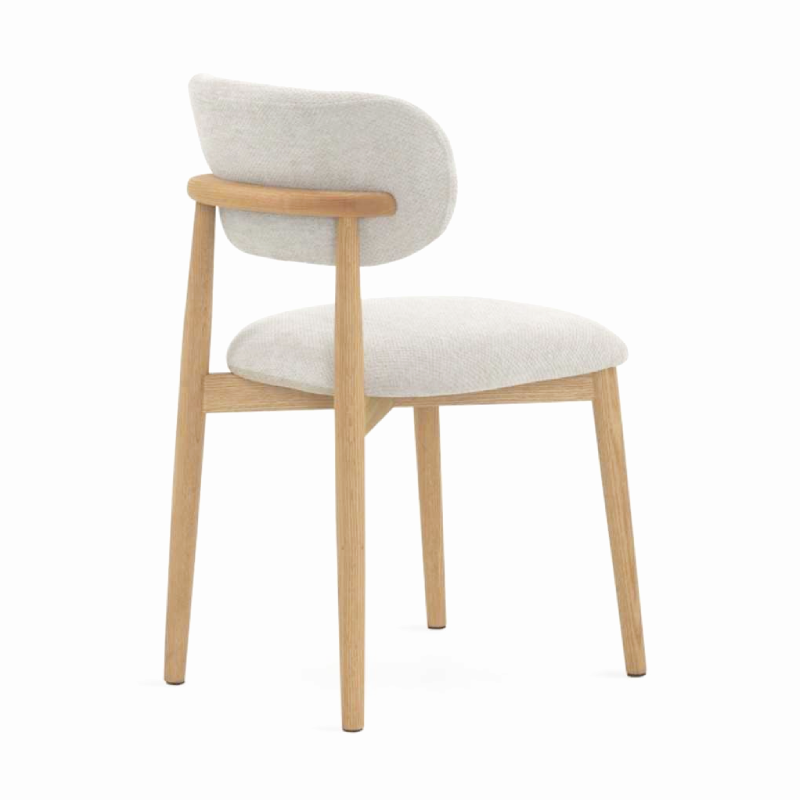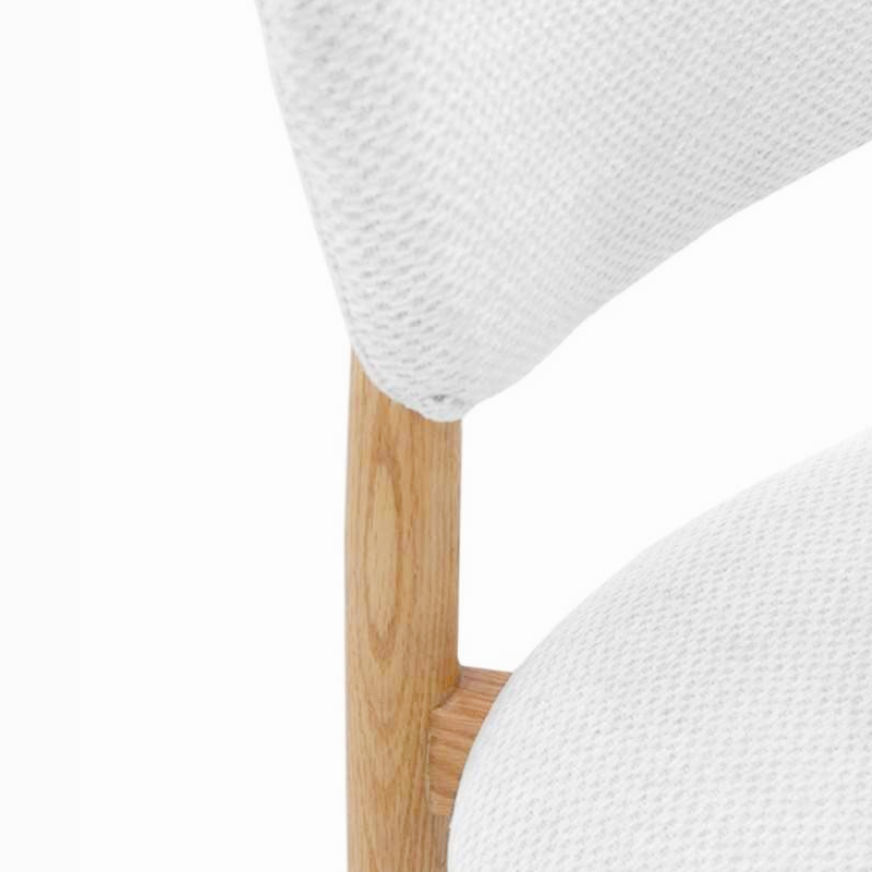 Su estructura de roble es robusta y resistente, perfecta para aguantar el ritmo de casa. Pero lo que realmente marca la diferencia es su respaldo y asiento tapizados. La chenilla tiene una fina textura en un tono blanco neutro que combina con absolutamente todo, aportando una suavidad que invita a que las cenas se alarguen hasta las tantas. ¡Tus invitados van a estar en la gloria!