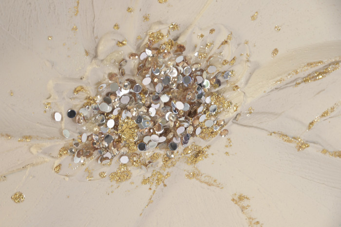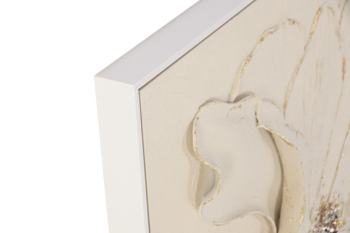 Set de 2 cuadros en lienzo con flores en relieve efecto 3D con toques de brillo, tonalidad beige