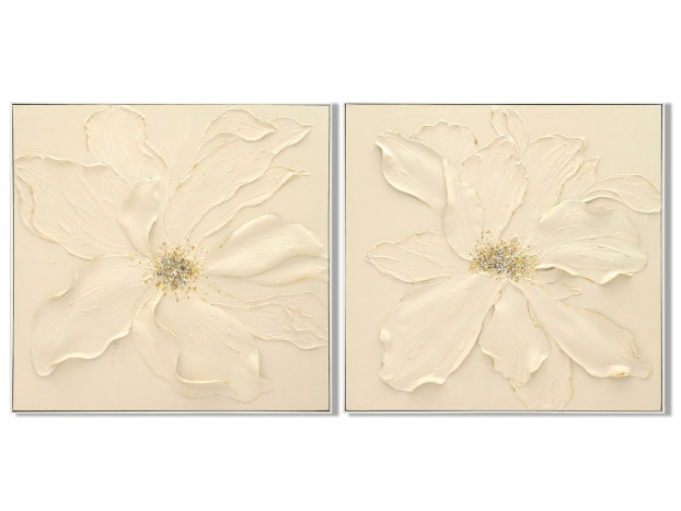 Set 2 cuadros crema beige brillo FLORES