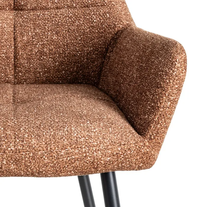 Hay sillas que invitan a quedarse, y NELA es una de esas que enamoran al instante. Su tapizado jaspeado, lleno de matices y textura, aporta una sensación acogedora que transforma tu casa. El asiento amplio y mullido, ofrece comodidad real en el día a día. Las patas metálicas estilizadas aportan ligereza visual y un toque contemporáneo que combina con todo. Cada detalle suma carácter y calidez sin restarle sencillez.