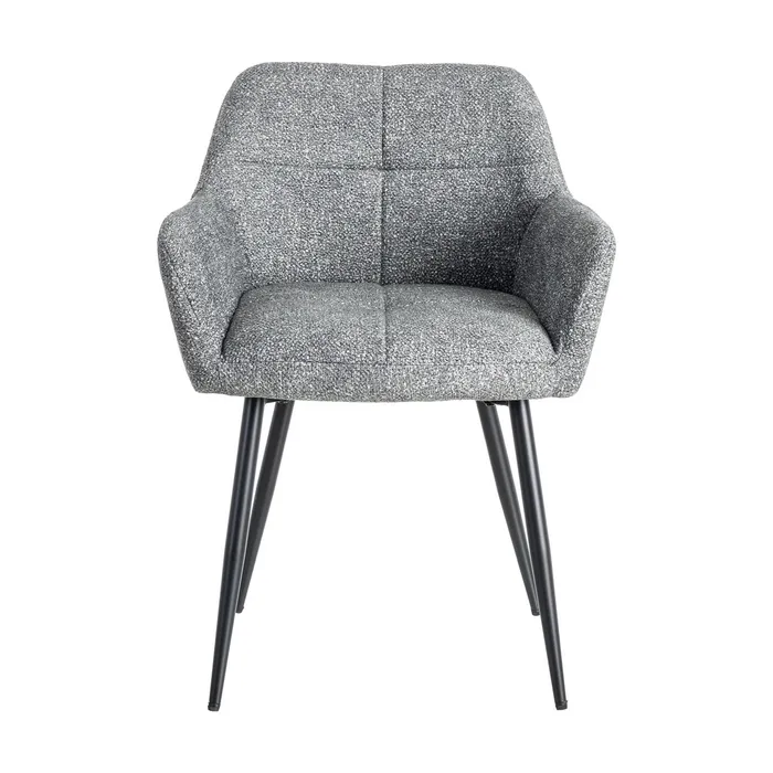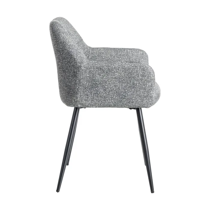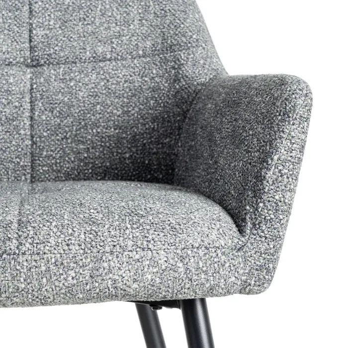 Hay sillas que invitan a quedarse, y NELA es una de esas que enamoran al instante. Su tapizado jaspeado, lleno de matices y textura, aporta una sensación acogedora que transforma tu casa. El asiento amplio y mullido, ofrece comodidad real en el día a día. Las patas metálicas estilizadas aportan ligereza visual y un toque contemporáneo que combina con todo. Cada detalle suma carácter y calidez sin restarle sencillez.
