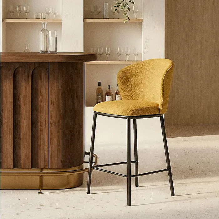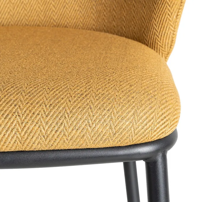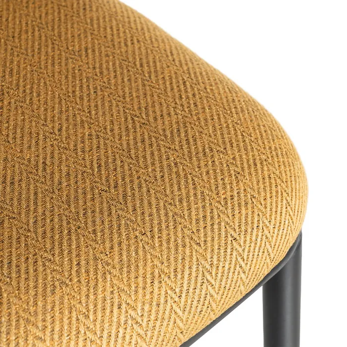 Set de 2 taburetes tapizados en color mostaza con patas en metal negro